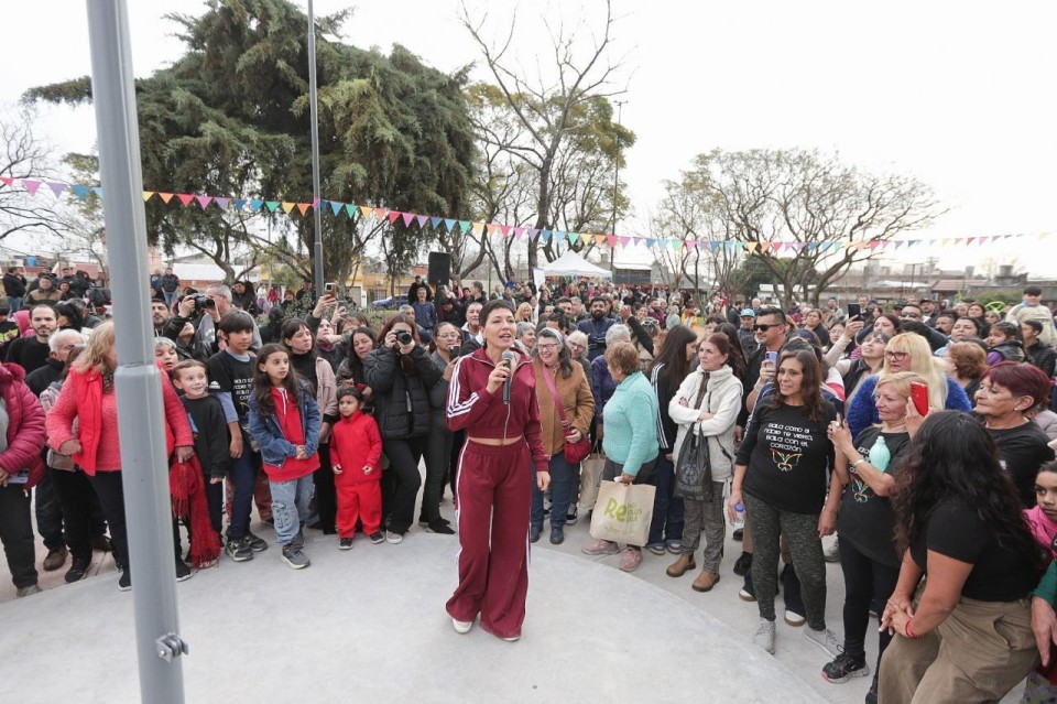 QUILMES.- La intendenta Mayra Mendoza inauguró este miércoles la puesta en valor integral de la plaza Santo Domingo en Ezpeleta Oeste, acompañada por cientos de vecinos y vecinas. El espacio, ubicado entre las calles México, Panamá, Miguel Cané y Lisandro de la Torre, fue completamente renovado con fondos 100% municipales como parte del plan de recuperación de todos los espacios verdes del distrito.