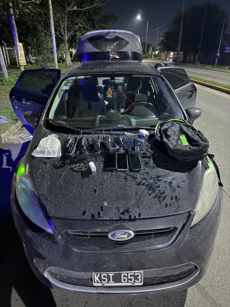 La intervención se produjo cuando los efectivos interceptaron un Ford Fiesta Kinetic color negro para un control de rutina. Ante el evidente nerviosismo de los ocupantes, el conductor intentó ocultar una mochila que se encontraba en el asiento trasero. Al ser inspeccionada, se descubrió que en su interior transportaban seis equipos de comunicación tipo «handy» (marcas Baofeng y Gadnic), sus respectivos cargadores, una balanza de precisión y tres teléfonos celulares.