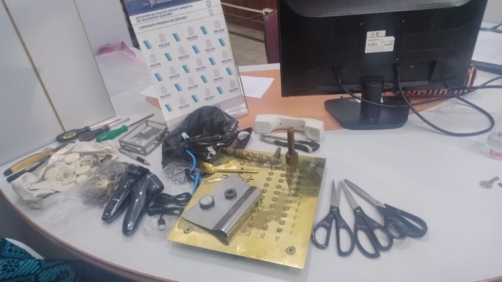 El personal del Comando de Patrullas (C.P.) Quilmes tomó conocimiento de que el sospechoso estaba merodeando la zona de Rivadavia y Alvear. Al ser detectado, intentó darse a la fuga, pero fue interceptado y reducido. El detenido llevaba un bolso con elementos sustraídos, entre ellos un manojo de llaves, un tubo auricular de teléfono de línea y una lapicera con inscripción del Banco Nación.