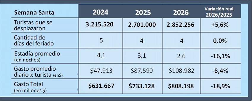 Un dato que grafica la dificultad económica actual es el costo de la canasta turística: una familia tipo necesitó, en promedio, más de $1,1 millones para viajar durante estos días. Según el Instituto de Economía de la UADE, este monto representa el 69% de un salario medio, lo que explica por qué, aunque hubo más gente en las rutas, el consumo en los centros comerciales y restaurantes estuvo lejos de las cifras de años anteriores. La coincidencia con el feriado del 2 de abril por el Día del Veterano y de los Caídos en la Guerra de Malvinas ayudó a sostener el volumen de gente, pero no logró revertir la tendencia a la austeridad que marca la «era libertaria».